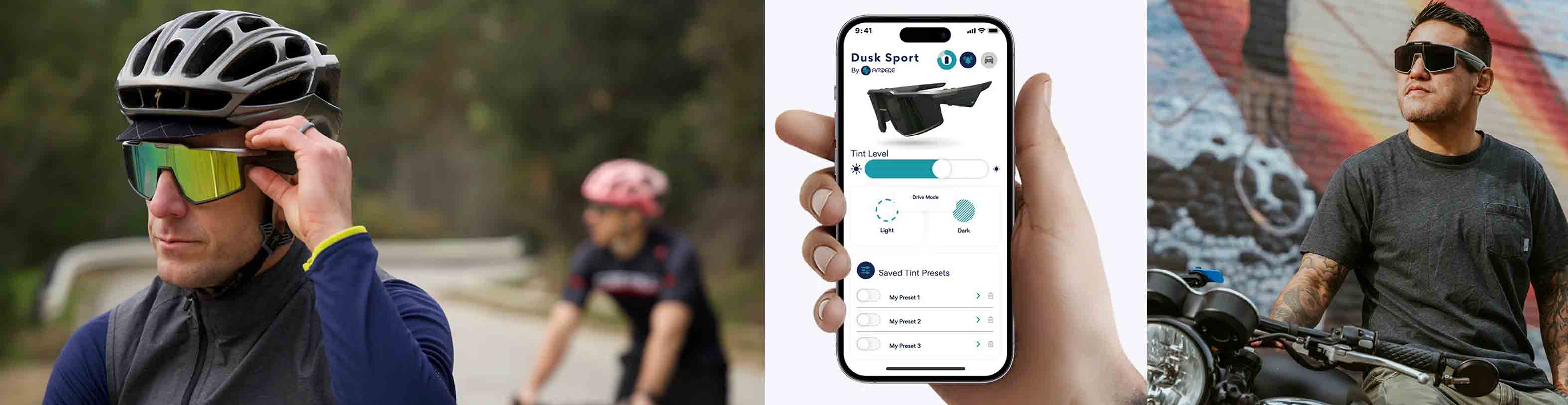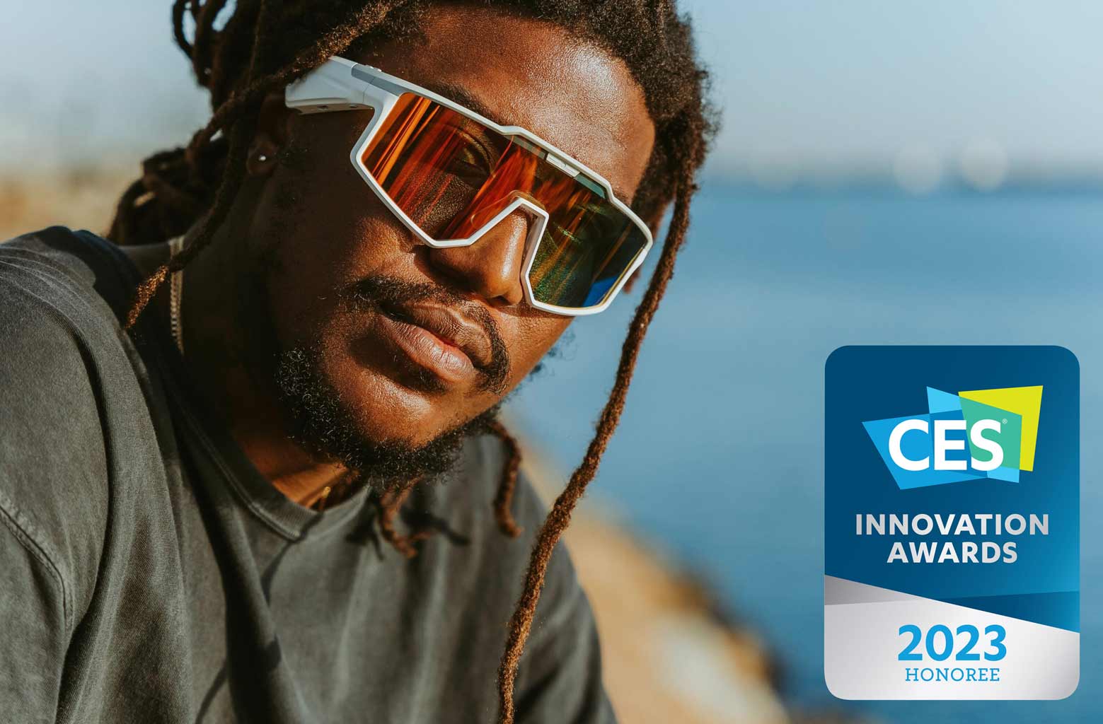 The ultimate sports sunglasses designed with game-changing tint-adjustable lenses and built-in premium audio. Control the tint directly on the frame, on the app, or set up automatic tint adjustment with InstaOptic™. The Ampere app unlocks additional features, like Huddle Mode™, which allows Dusk Sport users to quickly communicate with each other through the frames.
