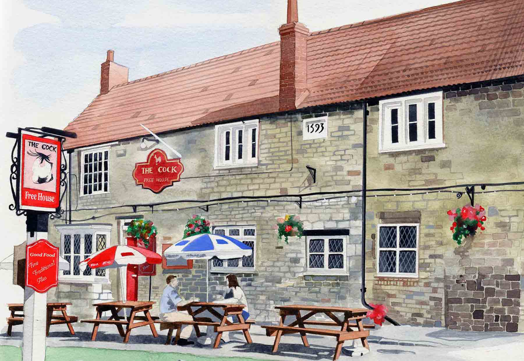 Architectural Watercolour Commission – The Cock Inn, Denford