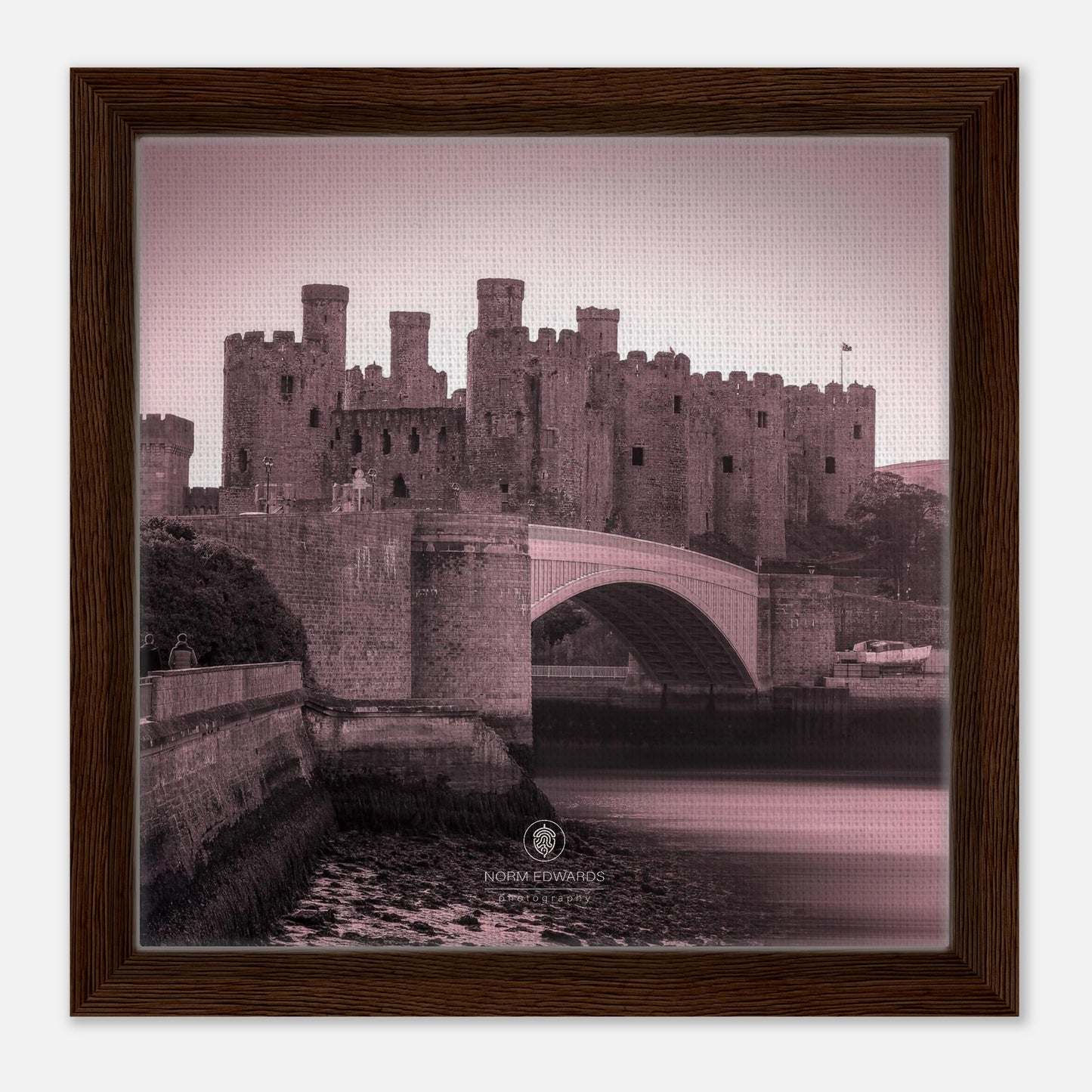 "Conwy Castle stands cloaked in history, its ancient stone bathed in warm, golden tones that soften the weight of centuries. Low light drapes the battlements in a moody hush, as if the walls themselves are holding their breath. A moment of stillness—where time feels suspended, and story seeps from every shadow."